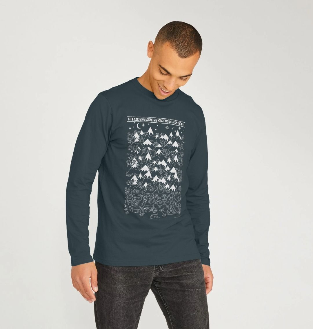 Expertly crafted from organic cotton, this long sleeved men's t-shirt features a stunning graphic of the Misty Mountains from The Hobbit. Show off your love for Middle-earth and feel good while doing it with this sustainable and comfortable t-shirt.