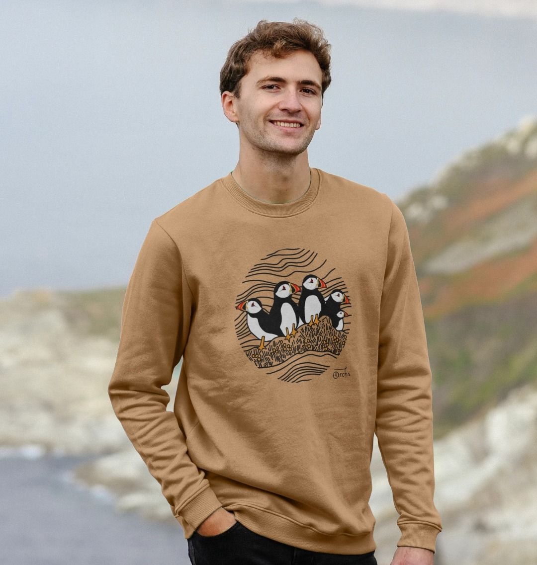 This Puffins Circus Crew Neck Sweater is crafted from 100% organic cotton for a soft feel and breathable comfort. Show off your playful style with the vibrant graphic puffin print design! Its classic crew neck shape fits perfectly with any wardrobe, making it a great addition to your collection.