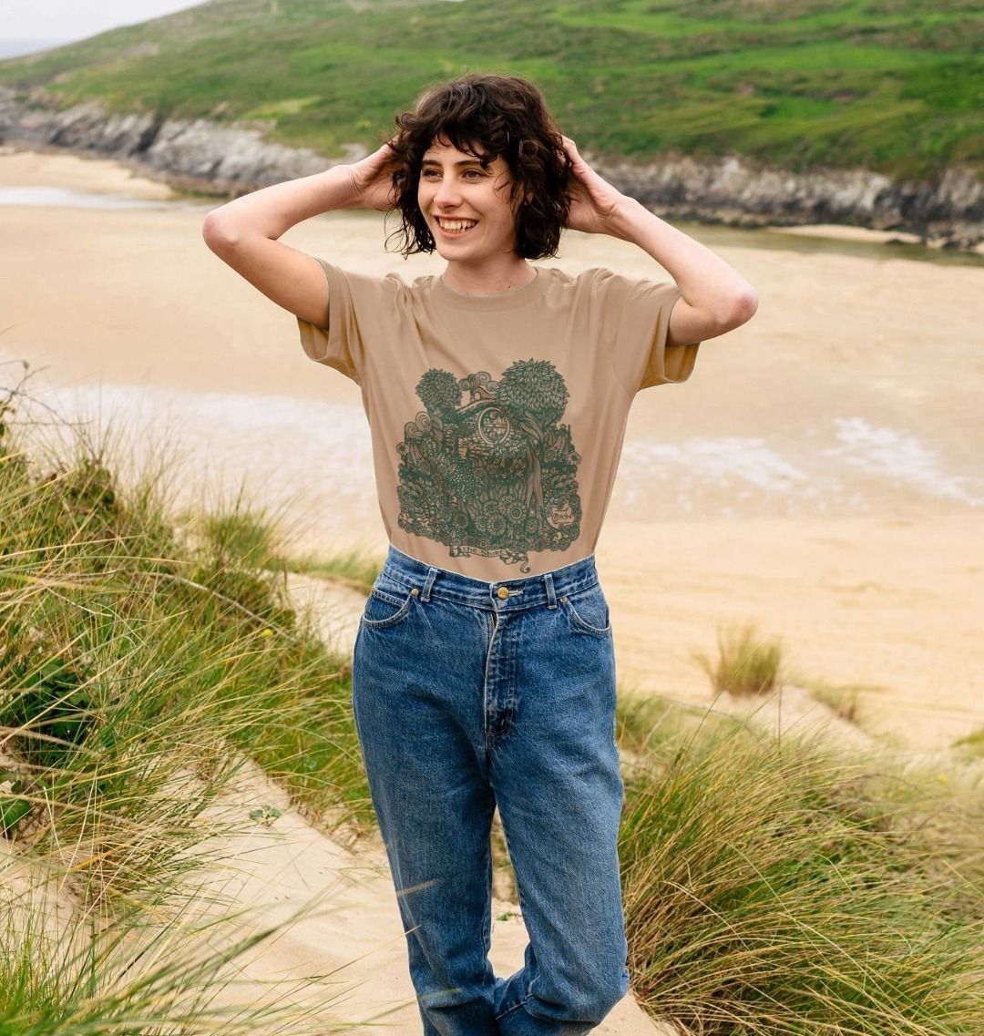 Certified Organic Cotton. GM free. Not tested on animals. Does not contain animal-derived products. Printed in the UK with low waste printing tech. Made in a renewable energy powered factory audited for a wide range of social and sustainability criteria.